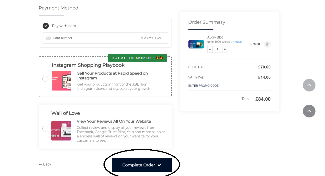 8. Proceed by clicking Complete Order